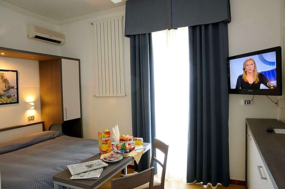 Majoitusvaihtoehdot palvelevat erilaisia matkailijoita, Studio, Sea View -vaihtoehdoista isompiin huoneistoihin ja neljän hengen huoneisiin. Esimerkkejä valikoimasta ovat Studio, Sea View; Apartment, 1 Bedroom; ja Quadruple Room, sekä muita kokoonpanoja kuten huoneita, joissa on Twin- tai Queen-vuoteet. Runsaasti tilaa perheille ja ryhmille tarkoittaa joustavia pohjaratkaisuja ja yksityisiä ulkotiloja — täydellisiä maljannostolle aamiaisen aikaan terassilla tai auringonlaskuiltoihin parvekkeella.